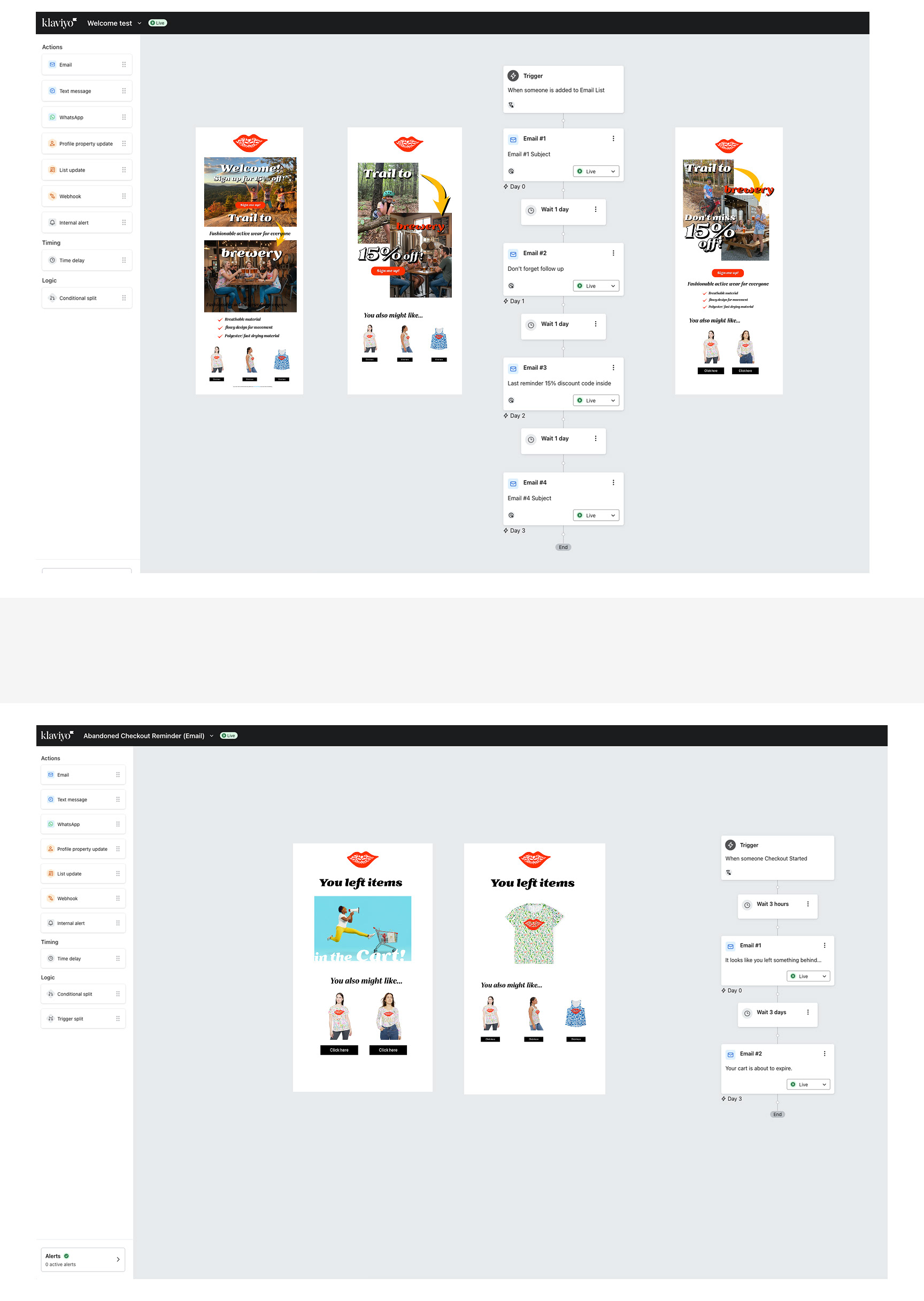 Klaviyo email flow- Welcome email and Abandon cart email setup.
